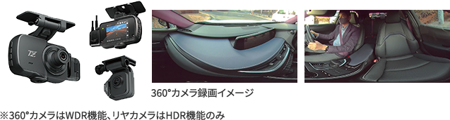 360°(前方180°+車内180°)+後方カメラにて全方位取り逃がしなし